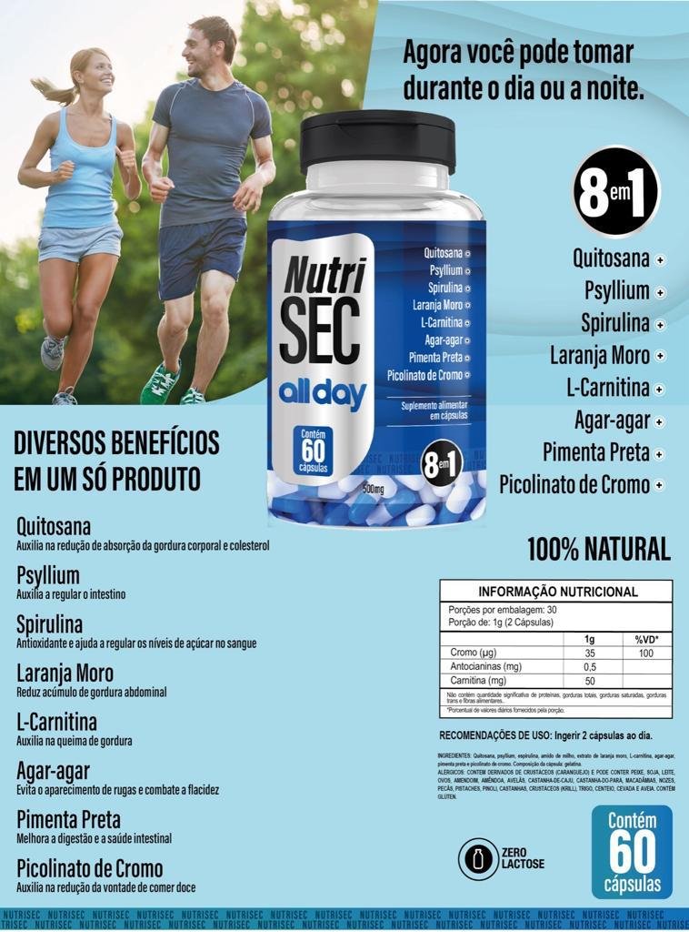Experimente a revolução de um emagrecedor com NutrisSec ALLDAY pensado para cuidar do seu corpo de maneira integral. Sem cafeína, nossa fórmula é a escolha ideal para quem busca um emagrecimento eficaz e equilibrado.